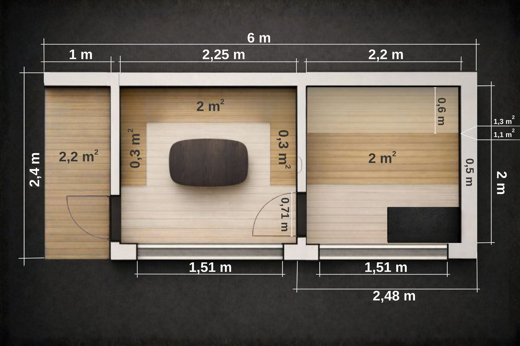 Сауна для больших компаний. Эта модель создана для тех, кто любит баню не только за пар, но и за атмосферу общения. Формат 2,4 × 6 метров с полноценной комнатой отдыха и террасой превращает сауну в пространство, где можно проводить вечера, собираться компанией и отдыхать без спешки.